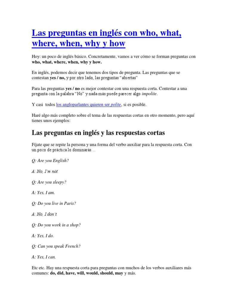 Preguntas Y Respuestas Cortas Usando Going To Cursos De Ingles Ats Short Answers Answers from i.pinimg.com El uso de las respuestas cortas en inglés: Si te lías a la hora de formular preguntas en inglés, este post te servirá como guía practica para aprender a preguntar en inglés. Aprende a dar respuestas cortas en presente en inglés y respuestas cortas con to be en inglés en este artículo.
