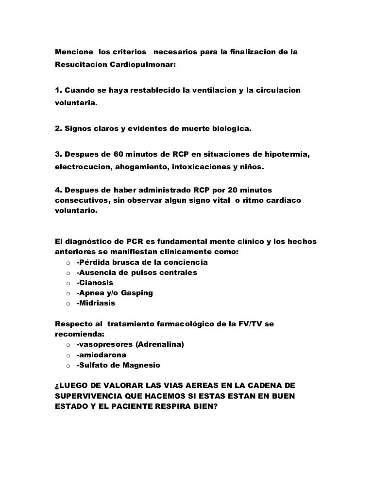 Preguntas De Examen Rcp. Estas breves preguntas no las he planteado como un examen, sino como un entrar en materia para nuestros talleres prácticos. Junto a mi opinión van unas referencias bibliográficas mínimas, en su mayoría centradas en las guías de…