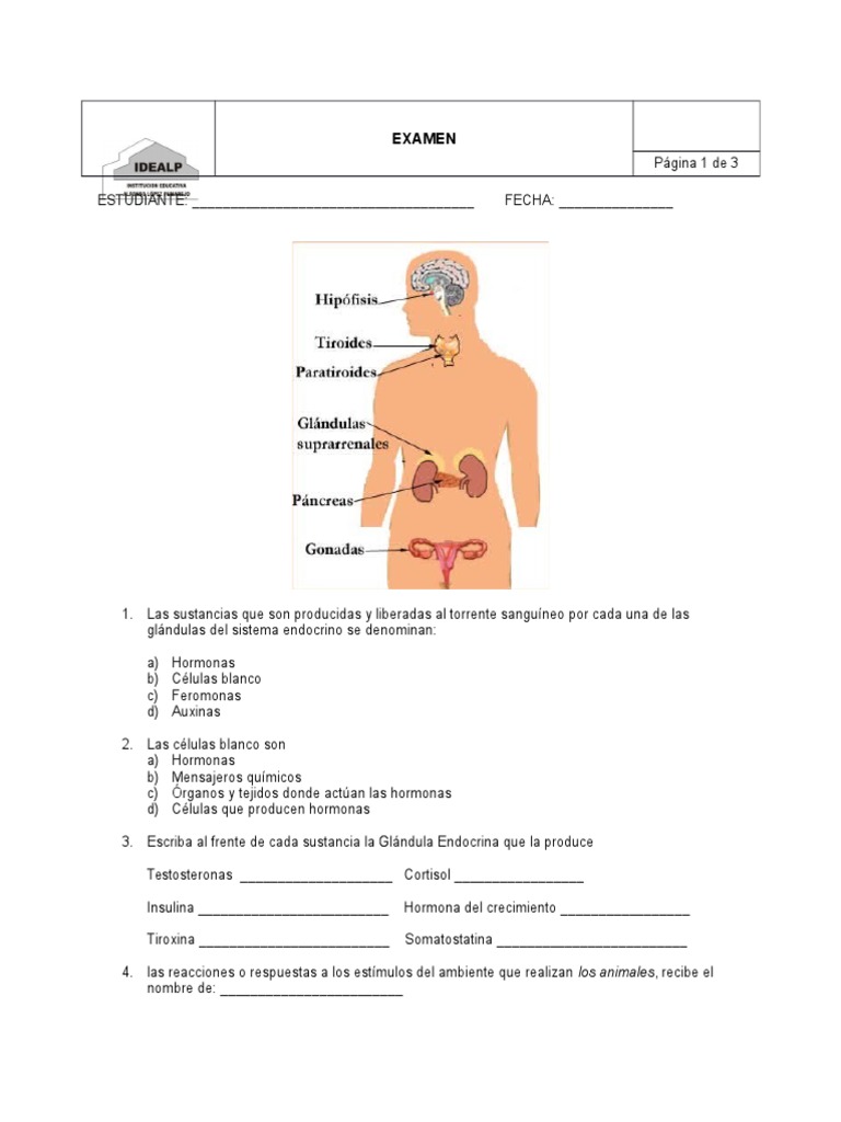 Preguntas De Examen Endocrino. Organo hormonal órgano específico órgano blanco órgano. ¿cuál es la función del sistema endocrino?segregar sustancias llamadas hormonas, que son liberadas al torrente sanguíneo y preguntas en forma de test1.