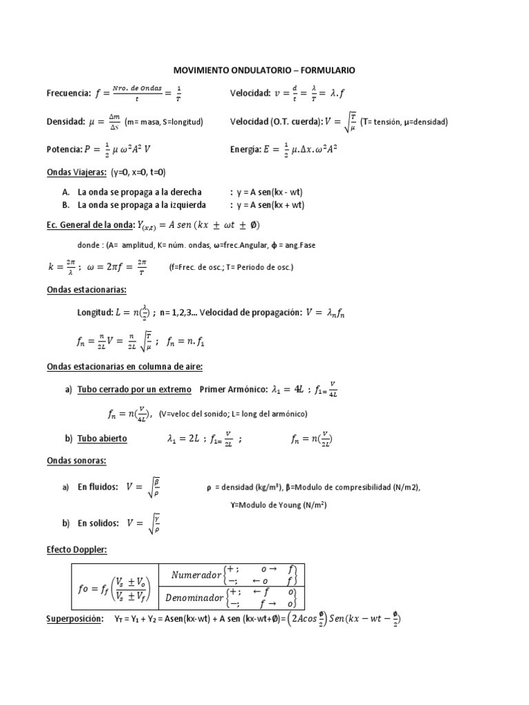 Formulario Ondas. Positivo, esta claro que en ocasiones es realmente. A parte da física que estuda as ondas e suas características é chamada de ondulatória.