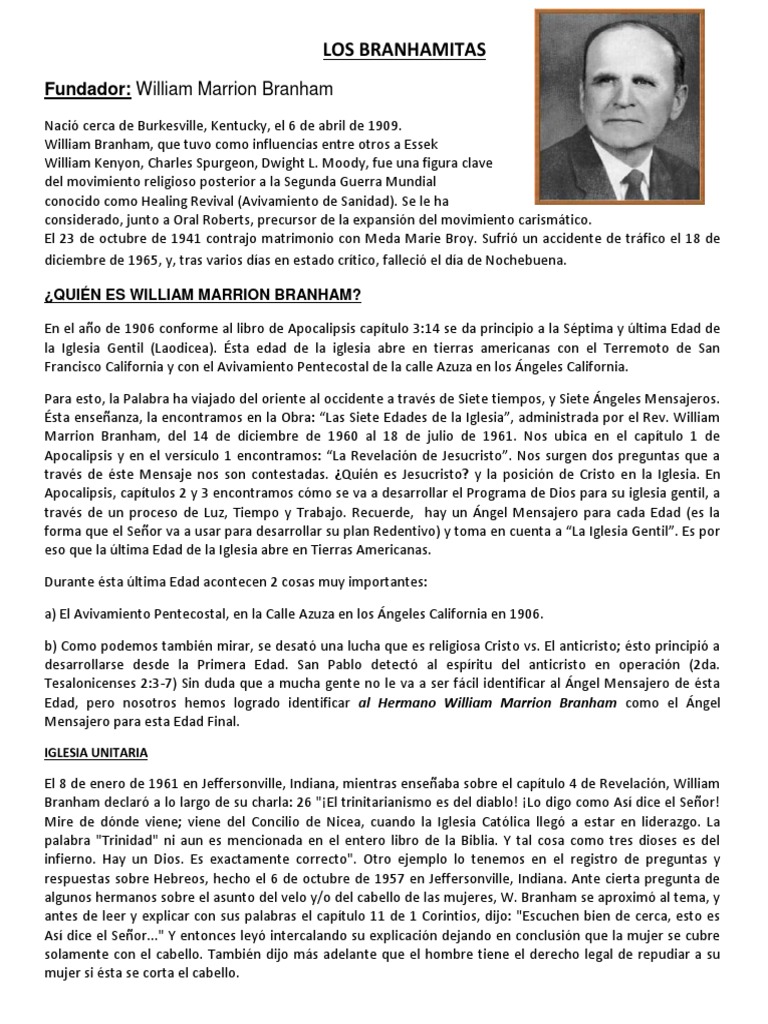 Ésta edad de la iglesia abre en tierras americanas con el terremoto de san francisco california y con el avivamiento pentecostal de. William marrion branham was one of the most influential bible ministers of our time, considered by many to be the initiator of healing and charismatic revival that began in 1947. Ésta edad de la iglesia abre en tierras americanas con el terremoto de san francisco california y con el avivamiento pentecostal de. The best best book i have read praise the lord for revealing his truth through the p!!!!rophet william branham.