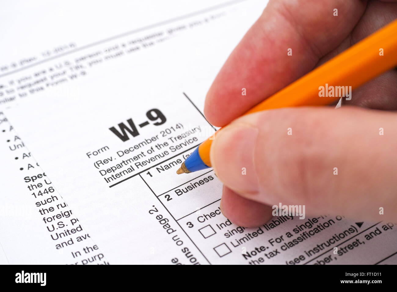 Formulario W-9. On average this form takes 6 minutes to complete. Concepto de papeleo de servicios de ingresos internos.