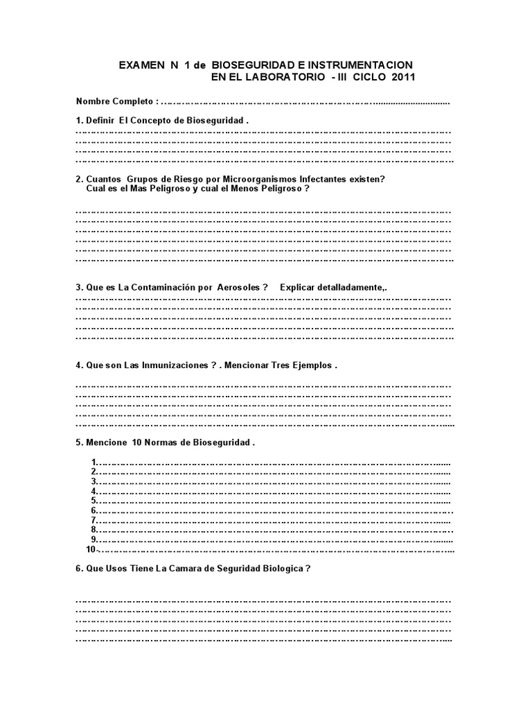 Preguntas De Examen Bioseguridad. Experimental bioseguridad en el laboratorio de microbiologia cuestionario definir que son las buenas de laboratorio (bpl) los lugares donde se aplican. La bioseguridad es importante en todos los servicios de salud y principalmente en bancos de sangre.