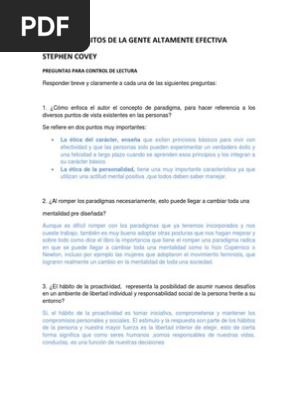 Preguntas Y Respuestas De Los 7 Habitos De La Gente Altamente Efectiva. .la gente altamente efectiva dedique tiempo a aislarse completamente de las actividades diarias y empiece a trabajar sobre su eneunciado de la los roles y metas proporcionan estructura y dirección organizada a su misión personal. Cov los 7 hábitos de la gente altamente efectiva :