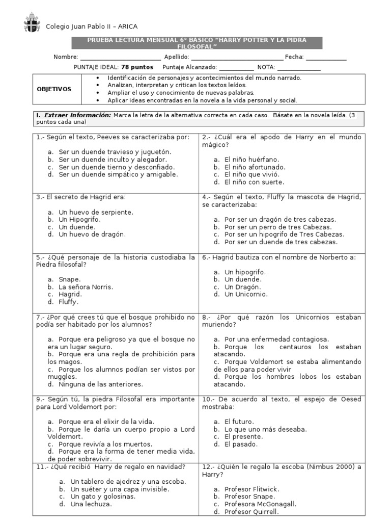 Harry potter y la piedra filosofal preguntas sobre la no me gusto para nada este test porque yo ponia la respuesta correcta y me ponia que estaba mal.