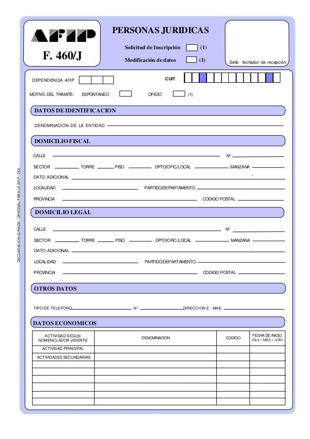 460 J Formulario. Diversos usuarios requieren recibir una certificación de su transacción cada mes o periodo cuando es obligatorio o para tener un control. Inscripcion y modificacion de datos personas juridicas de la administración nacional de ingresos públicos.