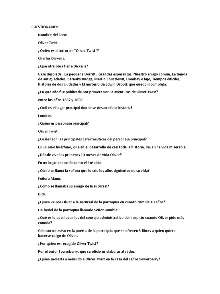 4.3 dónde están las respuestas de libro ingles 2 bachillerato living english 2. El juez le hizo unas preguntas a oliver, pero ste no pudo contestarle y se cay al suelo desmayado. Su madre es encontrada en la calle, inconsciente y a punto de parir, y es llevada a un hospicio para pobres, dependiente de una parroquia, donde muere luego de dar a. A través de los trucos y soluciones que encontrarás en esta página podrás completar todos los crucigramas
