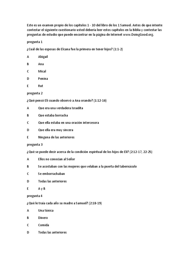 1 Samuel Preguntas Y Respuestas