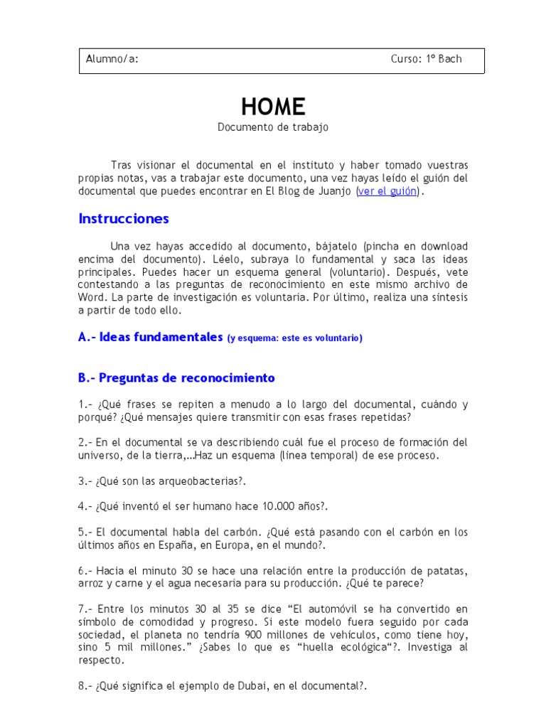 Preguntas guía del documental home.