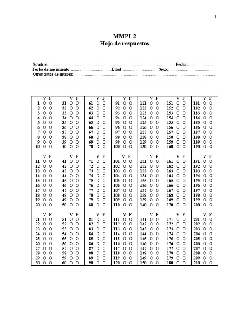 This application only provides simulations, and the test results on this application will not reflect the actual results of your psychometric test. Hojas de respuestas formato completo y formato abreviado, hojas de perfil masculino y femenino para los 3 tipos de escalas, hojas de perfil para la aplicación preguntas y respuestas. Minnesota multiphasic personality inventory (mmpi) information and preparation online. Its question set was taken from work released under the gnu gpl 3 by kevin timmerman in 2008.
