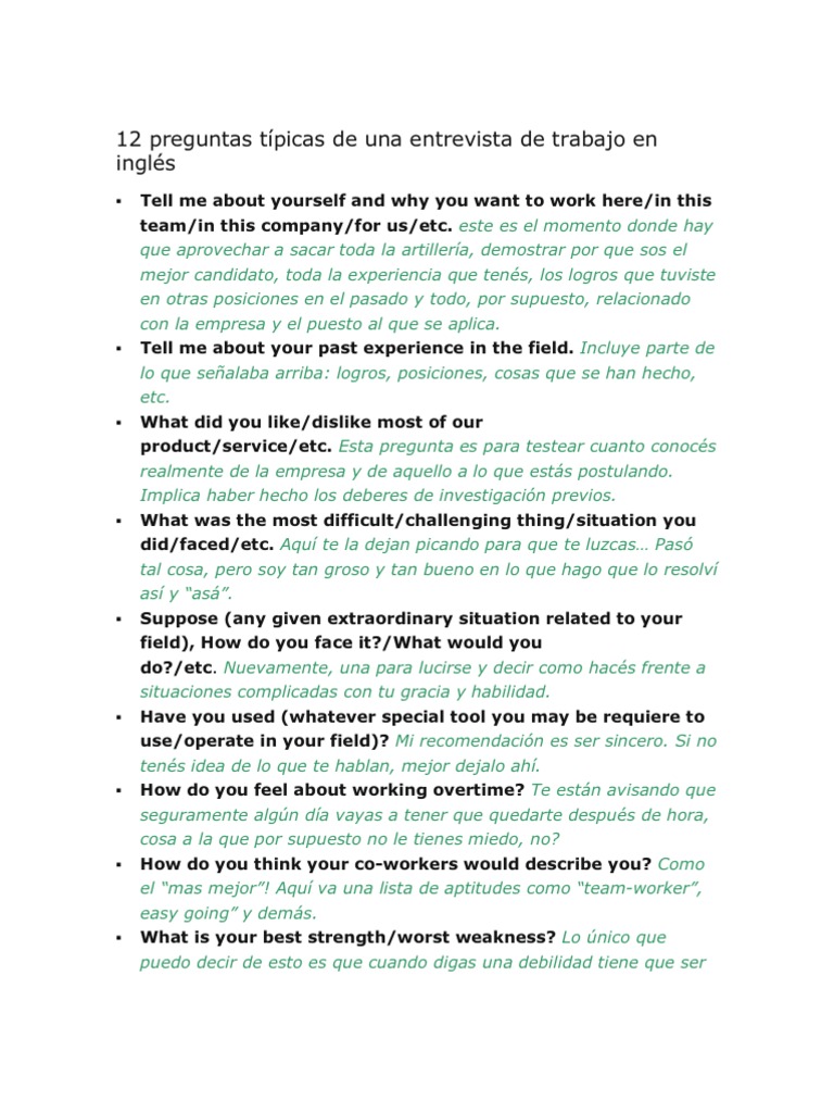 Lo que no sabe mucha gente es que en mi vida profesional he tenido que realizar. 7 preguntas y respuestas clave de una entrevista de trabajo en inglés. Ya que me he dado cuenta de que mucha gente que se enfrenta a su primera entrevista, cree que le van a preguntar por. Sin duda, es una conclusión curiosa si tenemos en cuenta que contamos con la generación.
