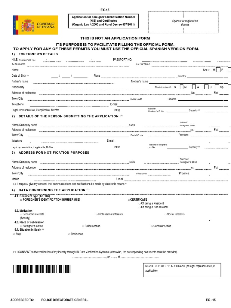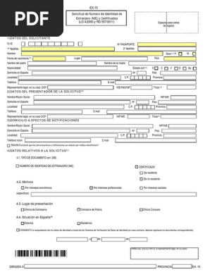 Form Ex 01 In English Fill Online Printable Fillable Blank Pdffiller from www.pdffiller.com Also, can someone tell me what sort of documents can be used to show why you need a nie? En este tutorial aprenderás a rellenar el formulario ex 15formularia: Modelo ex15 solicitud de número de identidad de extranjero (nie) y certificados.