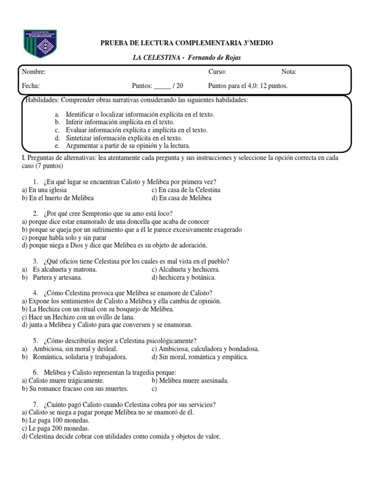 La Celestina Preguntas De Examen. (podéis hacerlo en grupos de cuatro personas) acto i: Contestad a las siguientes preguntas acerca de la celestina.