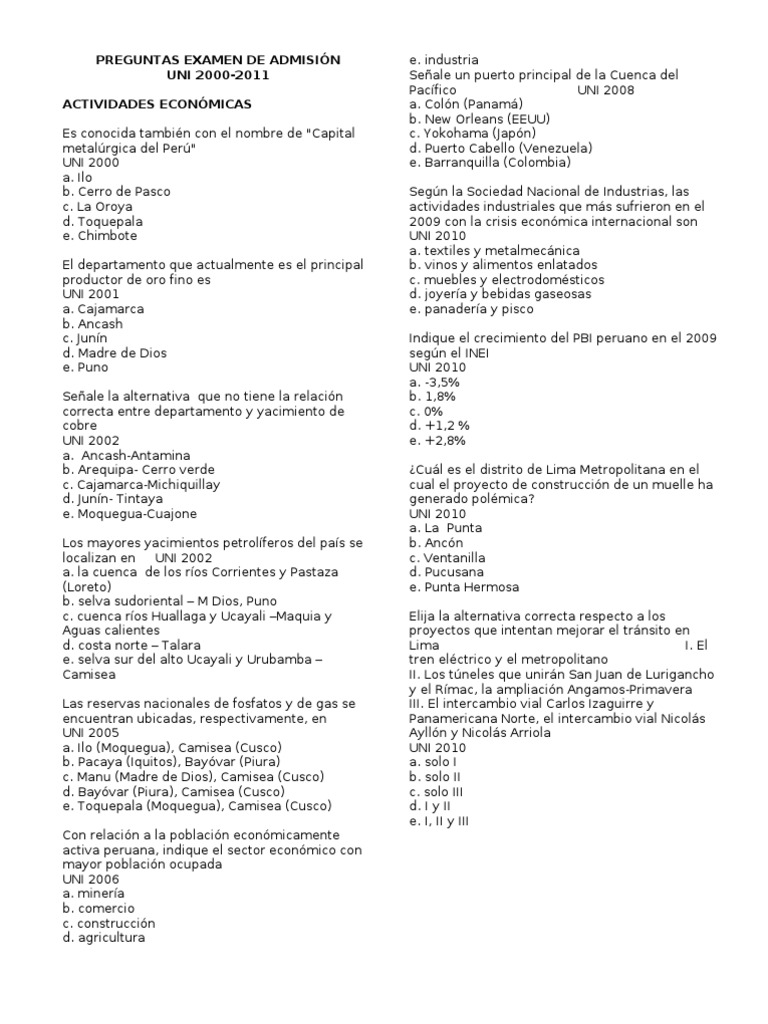 Temas Preguntas De Examen De Admision Uni 2000 2011 Poblacion Peru from imgv2-2-f.scribdassets.com ¿puedo hacer preguntas durante el desarrollo del iegat? No presenta los temas ni las preguntas que te pueden hacer en el examen de admisión. Es fundamental que el día de la presentación del examen de admisión asistas en el horario comprendido entre 6:00am a 8:30am (puede variar cada año) de acuerdo al reglamento de admisión de la universidad.