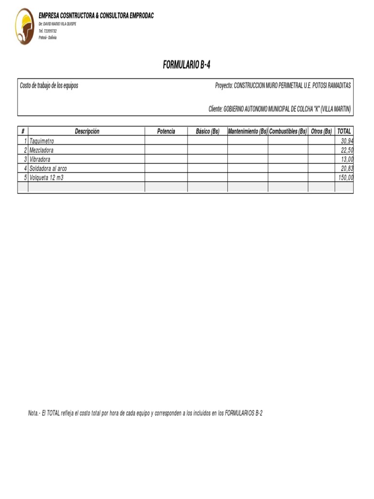 0 Response to "Formulario B-4 Costo De Trabajo De Los Equipos"