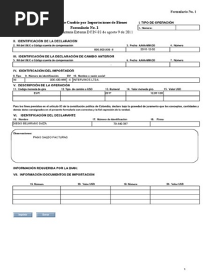Cambios en la presentación del formulario 15 empresas receptoras de inversión. Formulario son correctos y la fiel expresión de la verdad. Declaración de cambio por exportaciones de bienes. Para este año el plazo vence el 3 de julio de 2018.
