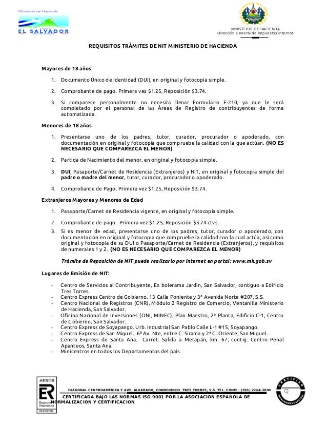 Formulario F-210 Ministerio De Hacienda. Yo, _____, con número de identificación tributaria _____, y documento único de identidad número _____, actuando en nombre y representación de la. 1231, san salvador república de el salvador, c.a.