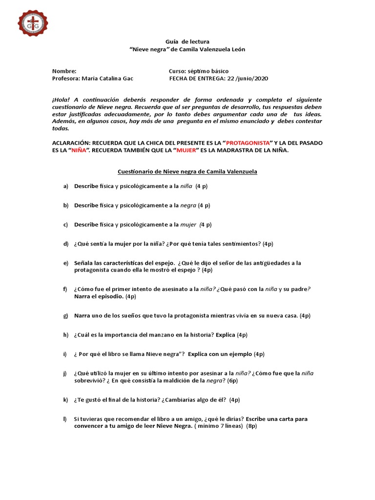 Preguntas Y Respuestas Del Libro Nieve Negra. Ella siente que no es parte de su familia, pues su mamá, quien está embarazada, no la trata muy bien que digamos. Preguntas relato nieve negra de camila valensuela.